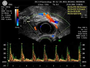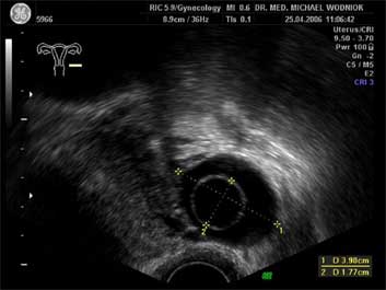 Ultraschall des kleinen Beckens mit der Vaginalsonde Die Ultraschalluntersuchung ist ein bildgebendes Verfahren, welches die Reflektion oder Echos von Ultraschallwellen in den unterschiedlichen Geweben und Organen ausnützt um computergestützt Schnittbilder aus dem Inneren des Körpers zu erstellen. Durch moderne hochleistungsfähige Mikroprozessoren ist es in den letzten Jahren möglich geworden, auch 3-dimensionale oder sogar bewegte 3-dimensionale (4-D) Bilder bzw. Bildsequenzen zu erzeugen. Beides können wir Ihnen in der Praxis anbieten. Eine Ultraschalluntersuchung ist ungefährlich und schmerzfrei. Durch die Anwendung von Dopplerverfahren, mit welchen wir den Blutfluss in den Organen feststellen und messen können, erweitern wir die Untersuchung um die funktionelle Dimension. Ein weiterer Bestandteil unseres Leistungsspektrums ist die farbkodierte Dopplersonographie. Farbkodiert sind entweder die Richtung des Blutflusses oder dessen Intensität. Über die computergestütze Berechnung des Blutflusswiderstandes ist im Einzelnen eine Aussage bzw. Vorhersage über die qualitative und quantitative Durchblutung möglich. (Plazentadurchblutung, kindliche Blutgefässe, Durchblutungsmuster bei verschiedenen Tumoren des Unterleibes und der Brustdrüsen) Ultraschalluntersuchungen haben in unserem Fachgebiet vielfältige Anwendungsmöglichkeiten gefunden. Besonders faszinierend ist der Einsatz im Bereich der vorgeburtlichen Diagnostik. Bereits in der 10. Schwangerschaftswoche ist es möglich, die Extremitäten des Embryos darzustellen und Aussagen zum Körperumrissbild zu machen (Ausschluss von Spaltbildungen, Nackentransparenzmessung). Auch im Bereich der Gynäkologie ist die Bedeutung des Ultraschalls stetig gewachsen und hat sich als erweiterte Vorsorge etabliert. Durch die vaginale Ultraschalluntersuchung können bereits kleine Veränderungen entdeckt werden, die sich der manuellen Tastuntersuchung noch entziehen. Auffällige Tastbefunde an den Eierstöcken sind durch den Einsatz von 3D / 4D in Kombination mit der Farbdoppleruntersuchung besser interpretierbar und können dadurch Frauen unnötige abklärende Operation ersparen. Die Anwendung des 3D Ultraschall, insbesondere im Coronarschnitt, lässt eine effektive Beurteilung für Veränderungen (Polypen, Karzinome) der Gebärmutterschleimhaut zu. ![]() ![]() ![]() ![]()